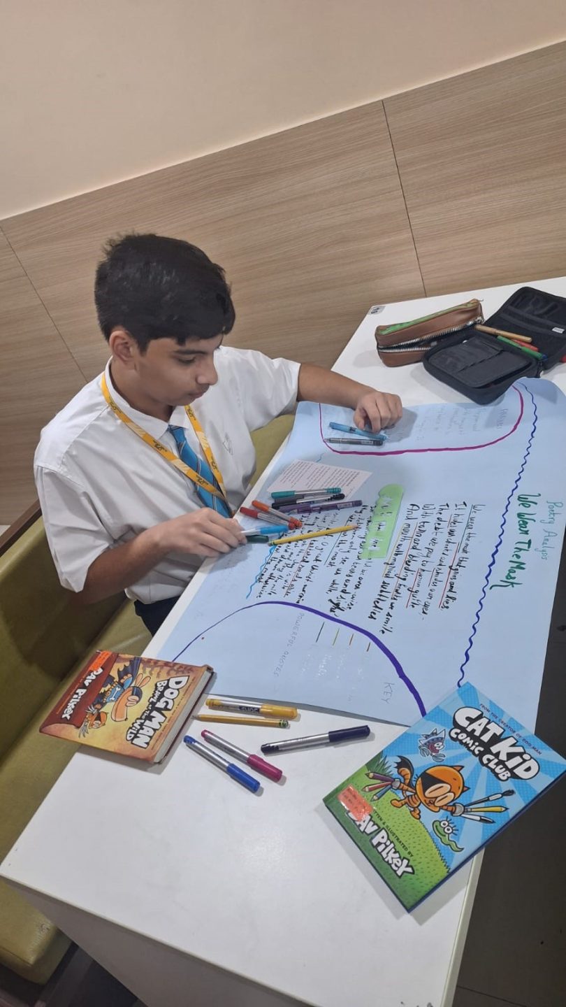 On Tuesday, the air in our school hallways was filled not just with words—but with wonder. It was Poetry Challenge Day, and while few students stepped onto the stage or submitted their verses, they carried with them the voices of many. Each grade explored this event differently, while Grade 6 engaged in reciting poems, Grade 7 rewrote the poems with a personal twist & Grade 8 students decoded poems to breakdown the beauty of the art of writing.
