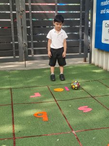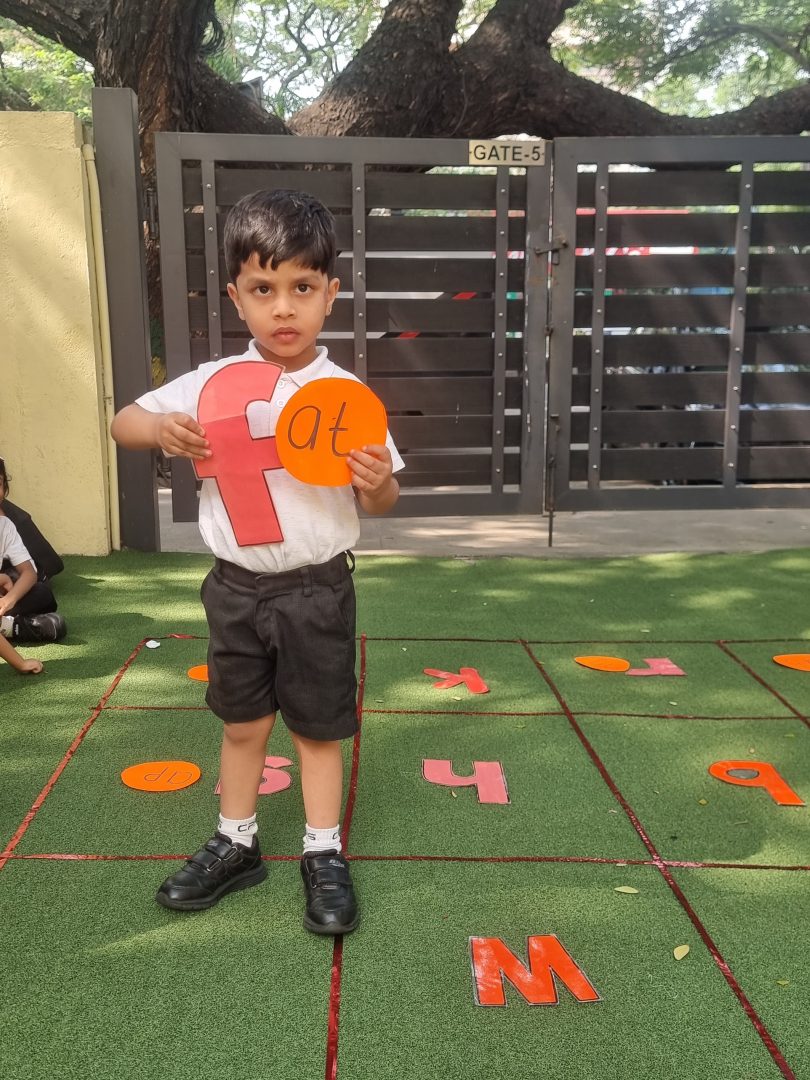 To strengthen letter recognition, phonics, and blending skills, in EY2 we conducted a fun and engaging “Roll the Ball Phonics Activity” that kept children active while learning. The activity began with children taking turns to gently roll a ball towards a box. Inside the box were letter cards. As soon as the ball reached the box, the child picked one letter card and confidently identified the letter name and its sound. Next came the exciting part—blending sounds. Using the identified consonant, children blended it with at, am, and ag word families to form simple vowel words such as cab, dab, bag, tag, and rag. The children said the sounds slowly and then blended them together, developing their early reading and decoding skills. By combining movement with learning, children remained focused, enthusiastic, and confident in forming the words.