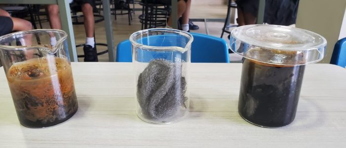 Our CIE 3 students investigated the factors affecting rust using wire wool. They set up three beakers: one with water and air, one with only water (sealed to prevent air), and one with no water or air. Over time, they observed that rust formed only in the beaker with both water and air. This hands-on experiment illustrated the crucial role of both water and air in the rusting process.