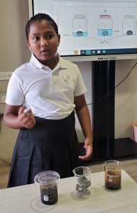 Our CIE 3 students investigated the factors affecting rust using wire wool. They set up three beakers: one with water and air, one with only water (sealed to prevent air), and one with no water or air. Over time, they observed that rust formed only in the beaker with both water and air. This hands-on experiment illustrated the crucial role of both water and air in the rusting process.