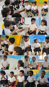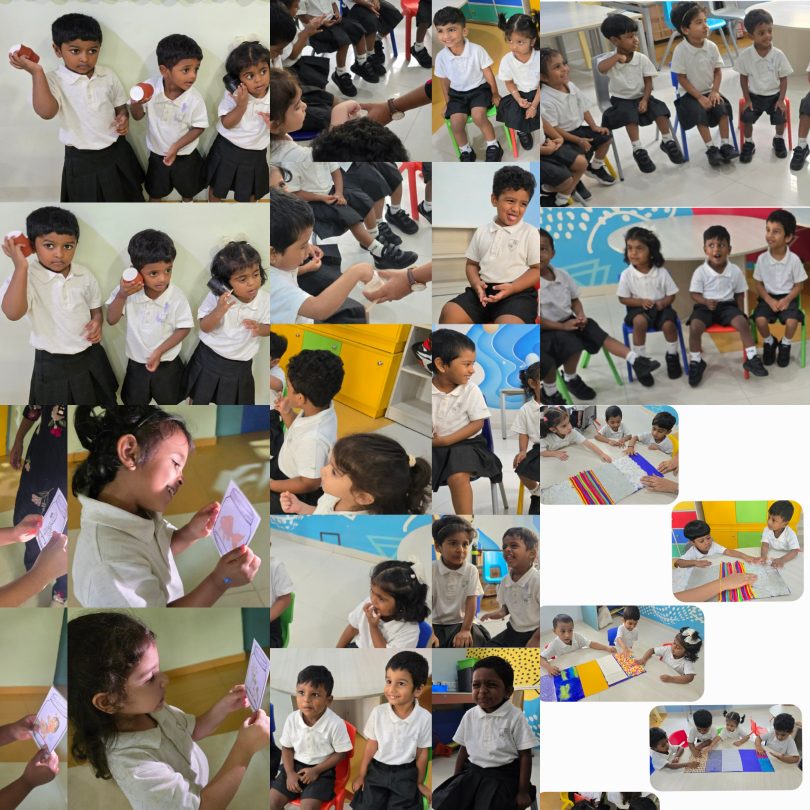 Our curious little learners went on a delightful journey to discover the magic of their five senses! Armed with flashlights, they lit up hidden pictures in the dark, learning just how powerful their eyes can be. Shakers filled with secret materials made for a symphony of surprise, as they guessed the sounds by ear. Tiny fingers explored rough, smooth, bumpy, and soft textures with wide-eyed wonder. The room filled with giggles as they sniffed mystery scents and bravely tasted foods from hidden containers. It was a hands-on, nose-first, taste-tested adventure that brought the senses to life—one giggle at a time!