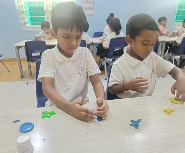In the early years, clay moulding is a fun and hands-on way for EY2 children to explore through touch. As they roll, pinch, press, and poke the clay, they develop fine motor skills and improve hand-eye coordination. Using simple tools like stamps, they discover textures and patterns while encouraging creativity and imagination. Playful instructions such as “tap it” or “press it down” help them follow directions and build focus. This sensory activity combines learning and creativity, making exploration joyful and meaningful.