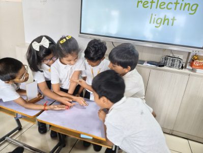 This week, our curious CIE 1 scientists embarked on a magical journey to discover what happens when light meets a mirror. With a tiny torch, a shiny mirror, and a small screen, our little explorers were full of excitement and questions.