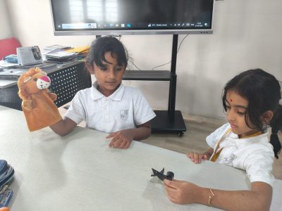 Through lively puppet stories, children were introduced to new vocabulary, sentence structures, and expressive speaking. The puppets sparked curiosity and made the storytelling experience relatable and fun. More than just listening, our learners actively participated—taking turns to voice characters, recreate scenes. These activities helped strengthen their oral communication, listening comprehension, and confidence in using Hindi in a playful setting. It was heartwarming to see their creativity and imagination come alive as they brought the characters to life.