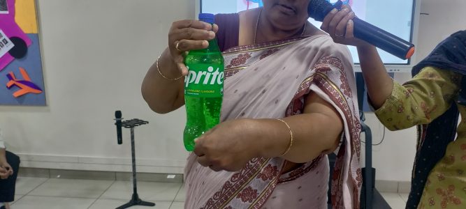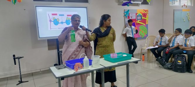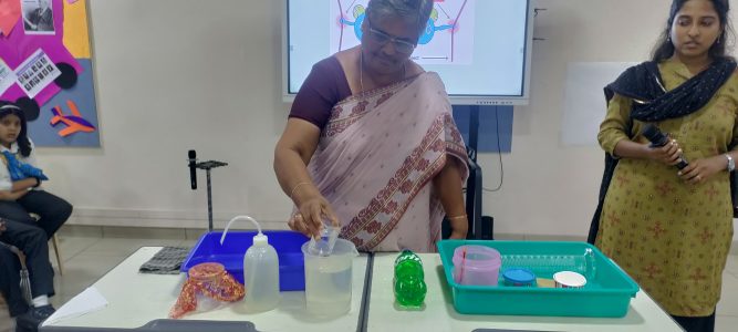 In another exciting and interactive activity, water was transferred using a string, showcasing the invisible yet powerful cohesive forces between water molecules. A creative demonstration using a pierced bottle illustrated cohesion and adhesion as water clung to the surfaces. These stimulating and thought–provoking experiments made science fun, tangible, and unforgettable.