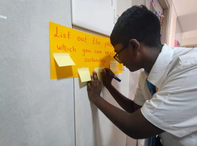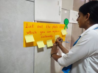 Our day started with reflection: during assembly, each student named one plastic item they used yesterday and suggested a reusable alternative. This tiny moment helped everyone realize how common plastics are in our lives — and how easy it is to make a switch!