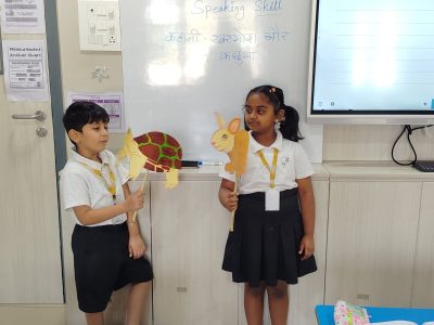 Our CIE 1 learners are steadily progressing toward becoming confident communicators. As part of this exciting learning experience, they recently stepped into the magical world of storytelling. With sparkling enthusiasm, they picked up puppets and beautifully attempted to narrate the timeless classic, The Tortoise and the Hare.