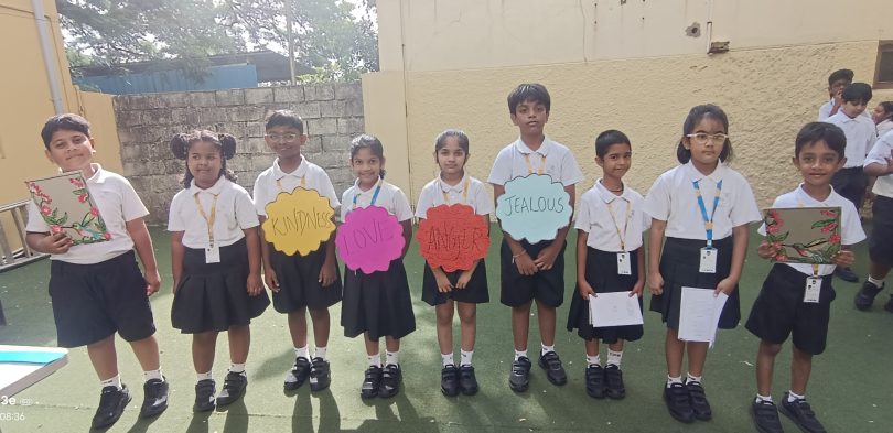 The students of CIE 3A beautifully presented their class assembly on the thought-provoking theme “Words Are Seeds.” The assembly revolved around an expressive poem that explored four powerful emotions—kindness, anger, love, and jealousy—reminding us how words shape these feelings and, in turn, our actions. Each student portrayed a different emotion, showing how words can heal or hurt, uplift or break, build or destroy.