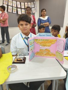 Middle school students from CAIE 6-8 showcased their innovative models, such as Newton’s Cradle, Seismograph, and a Futuristic Mall, highlighting the interconnectedness of Math, Science, and Technology. One standout project was the Asteroid Tracking system developed by CAIE 7 students, who eloquently explained the potential impact of asteroids on Earth and demonstrated their model’s ability to track them. It was an incredible show of learning outcomes beyond academics through these impressive models, captivating the audience with their creativity and technical prowess.