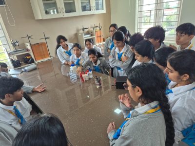 During this hands-on session, students explored the process of electrolysis by passing electricity through a salt solution (brine). They observed how electrical energy can bring about chemical changes and learned how this process is used in real-life industries through the chlor-alkali process. Students discovered that when salt dissolves in water, it separates into charged particles called ions. By applying an electric current, they saw how different substances are formed, including hydrogen and chlorine gases, and how the remaining solution becomes alkaline due to the formation of sodium hydroxide (NaOH).