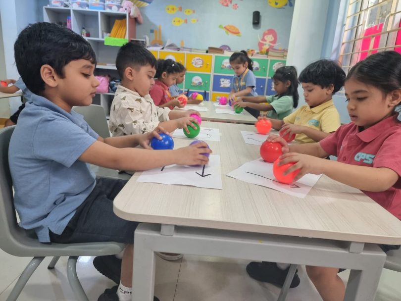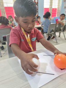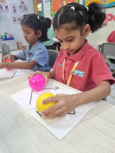 In EY2 as part of our fine motor and movement skills session, children participated in an engaging activity designed to build bilateral coordination, the ability to use both hands together in a coordinated way. In this task, they were encouraged to move a ball carefully along a marked path using both hands simultaneously. It was amazing to see their concentration and teamwork between their left and right hands as they guided the ball through the lines with control and focus. Activities like these not only strengthen motor skills but also lay the foundation for tasks like writing, cutting, and everyday coordination. Plus, the children had so much fun while learning.