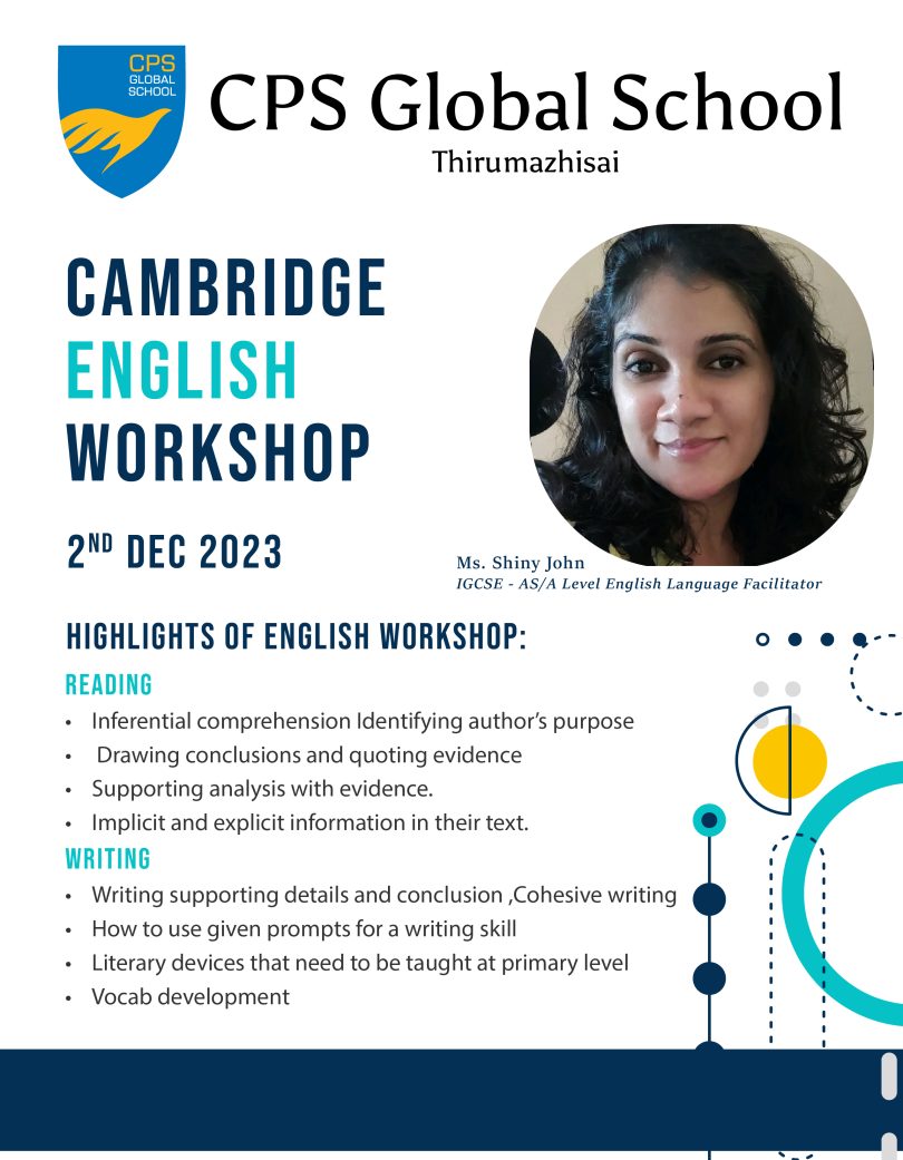 Engaging workshops like the recent one conducted by Ms. Shiny at CPS Global School, Thirumazhisai are invaluable in the realm of education. The Primary and Lower Secondary English Resources workshop was a comprehensive dive into fundamental pedagogies essential for educators. Held on December 2nd, this session welcomed teachers not just from the hosting campus but also from the Anna Nagar campus, fostering a collaborative learning environment.
