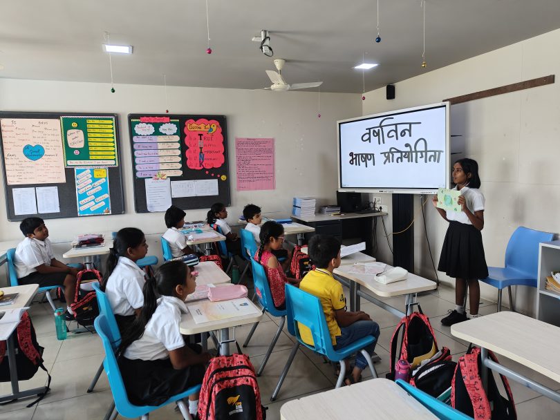 Students of CAIE 5 participated in a speaking exercise in class where they voiced their thoughts, explained their causes, and even shared solutions. They were participating in a task that enhanced their verbal communication abilities.