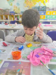 The activity also sparked conversations about nature and sustainability, helping children understand that art can be created with natural materials found around them. Sharing their finished pieces with friends gave them a chance to practise their language skills, storytelling, and to take pride in their work.