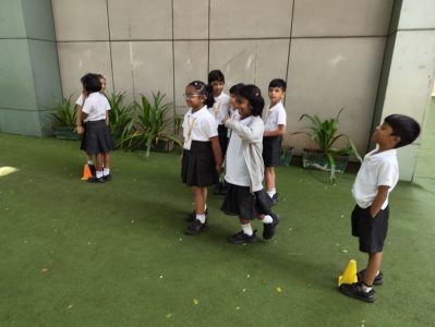 The children were not told the topic. Instead, they were asked to imagine themselves as birds and animals. Ten colorful cones were placed around the play area, and each cone represented a place they could occupy. In every round, they had to quickly find a cone to “settle” in.