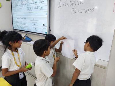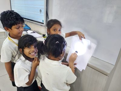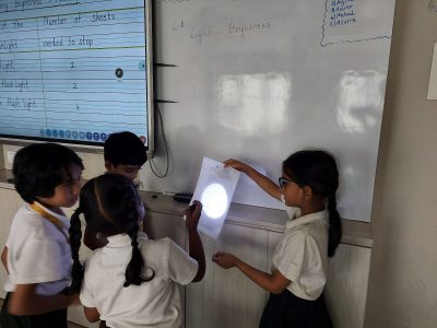 Our CIE 1 light explorers set out on a fun experiment to find the brightest flashlight! Using sheets of paper, they tested how many were needed to block the light. They switched on each flashlight and placed paper sheets in front, observing how much light passed through. “This one is super bright, it needs more sheets!” They cheered. Some flashlights dimmed quickly, while others stayed bright. They learned that stronger light needs more sheets to block it. Their adventure proved that science is about exploring and discovering. Keep shining bright!