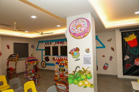 From the elegance of Golden Spoon — our five-star dining experience — to the sizzle of street food stalls like Waffle, Idly Cart, and Chai Cart; the sweetness of the Candy Shop; the bold flavours of Kimchi Kingdom; the aromatic allure of Manam Manakkum Biriyani Kadai; and the bustling energy of CPS Donald’s Hub — every corner brimmed with imagination, creativity, and flair.